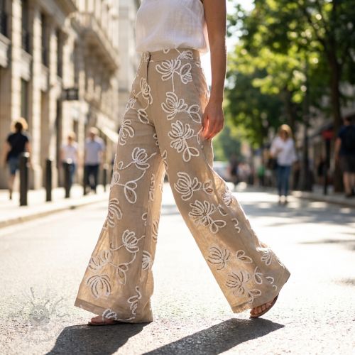 Bawełniana tkanina EMBROIDERY Loom En Light brown