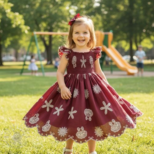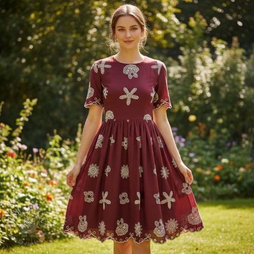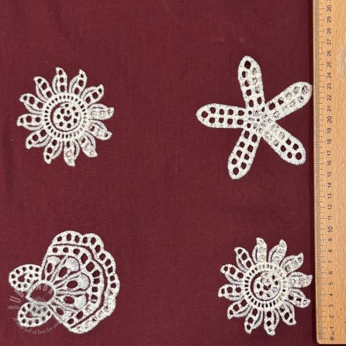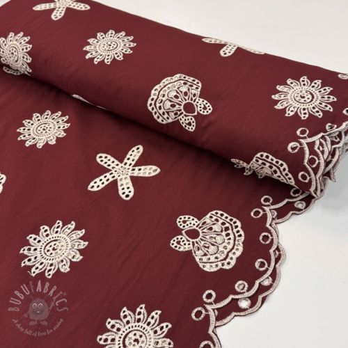 Bawełniana tkanina EMBROIDERY Sea ornaments bordeaux