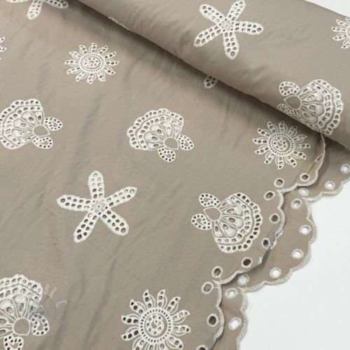 Bawełniana tkanina EMBROIDERY Sea ornaments brown