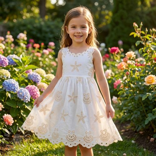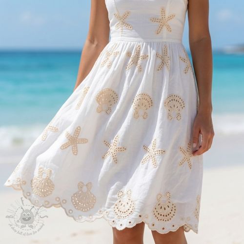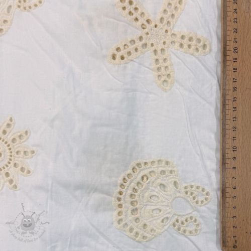 Bawełniana tkanina EMBROIDERY Sea ornaments white