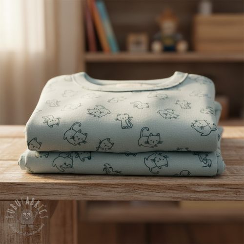 Bawełniana tkanina FLANNEL Cats mint