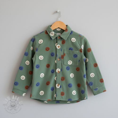 Bawełniana tkanina FLANNEL Happy faces army green