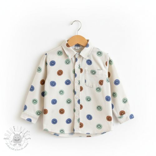 Bawełniana tkanina FLANNEL Happy faces off white green