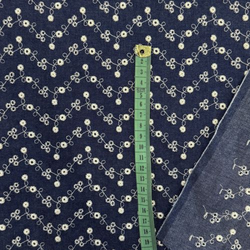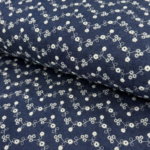 Bawełniana tkanina JEANS Embroidery dark blue