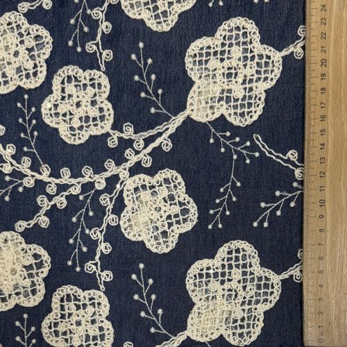 Bawełniana tkanina JEANS EMBROIDERY Flora design D