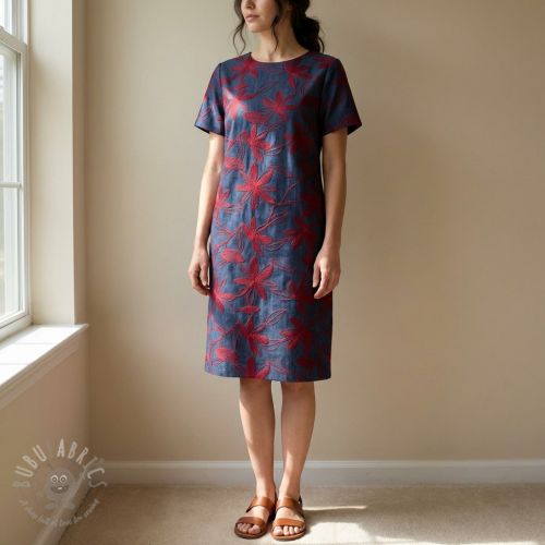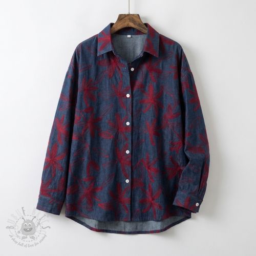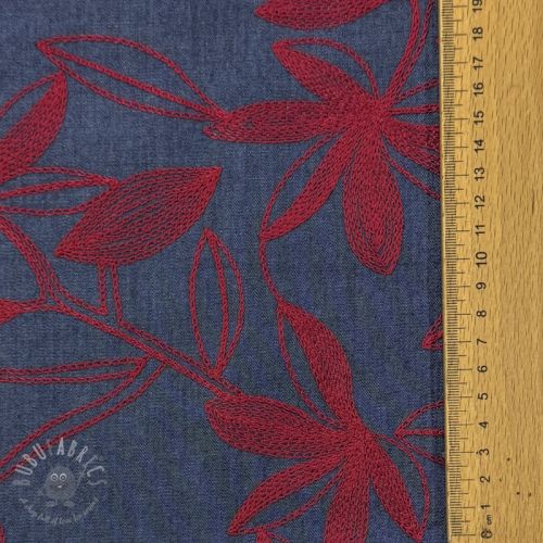Bawełniana tkanina JEANS Embroidery Flowers burgundy