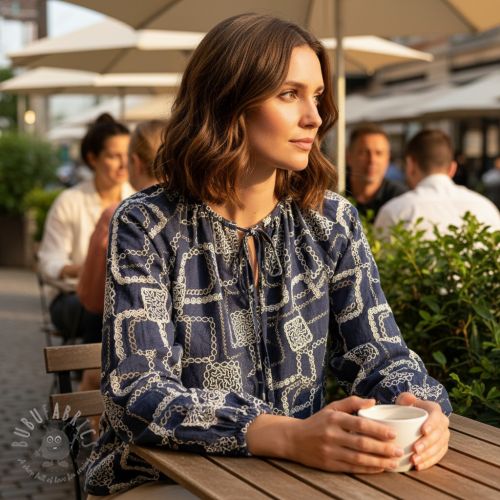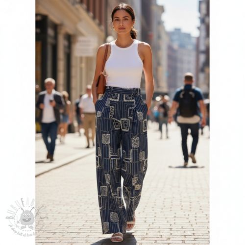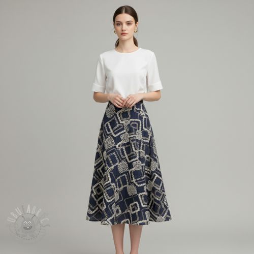 Bawełniana tkanina JEANS EMBROIDERY Square dark blue