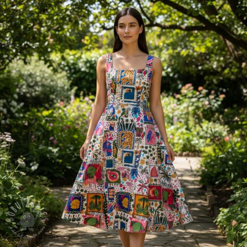 Bawełniana tkanina SATIN Summer patchwork digital print