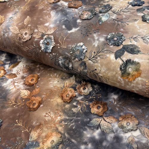 Bawełniana tkanina TIE DYE EMBROIDERY Poppy design Q