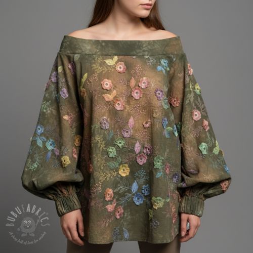 Bawełniana tkanina TIE DYE EMBROIDERY Poppy design Q