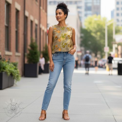 Bawełniana tkanina TIE DYE EMBROIDERY Poppy design Q