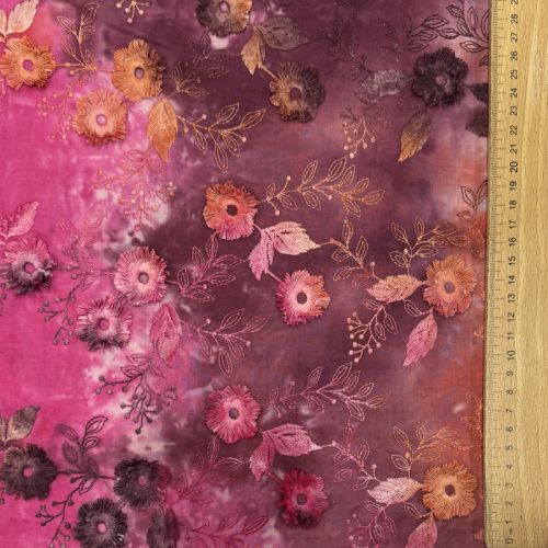 Bawełniana tkanina TIE DYE EMBROIDERY Poppy design K 2nd class
