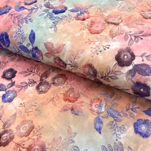 Bawełniana tkanina TIE DYE EMBROIDERY Poppy design Q