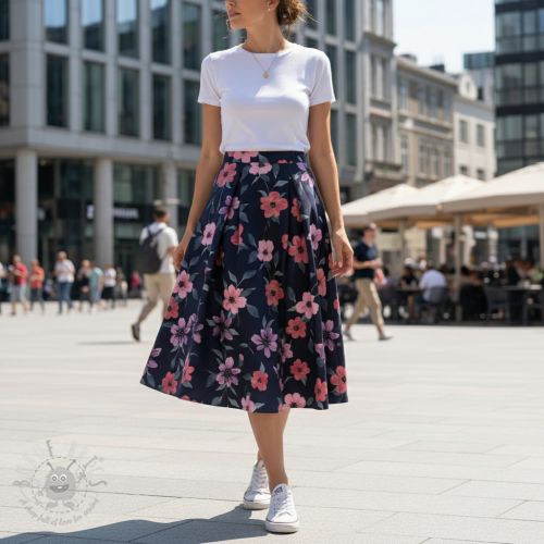Bawełniana tkanina VISCOSE Flowers navy digital print