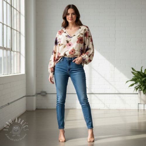 Bawełniana tkanina VISCOSE Flowers offwhite digital print