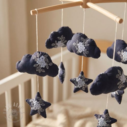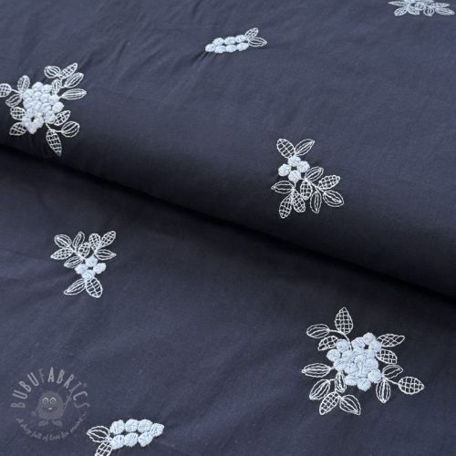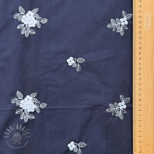 Bawełniana tkanina VOILE EMBROIDERY Flowers navy