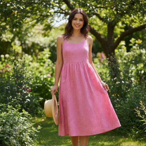 Bawełniana tkanina VOILE EMBROIDERY Vintage fuchsia