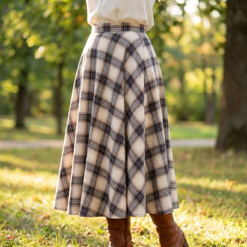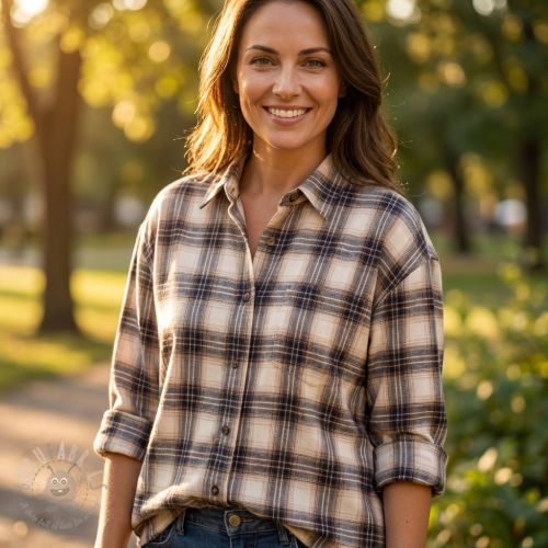 Bawełniana tkanina YARN DYED BRUSHED Check Tim beige