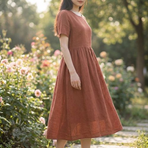 Bawełniana tkanina z lnem kasztanowa