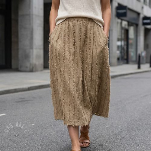 Bawełniana tkanina z lnem Vintage Fringe Stripe army