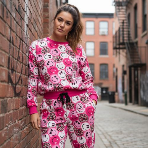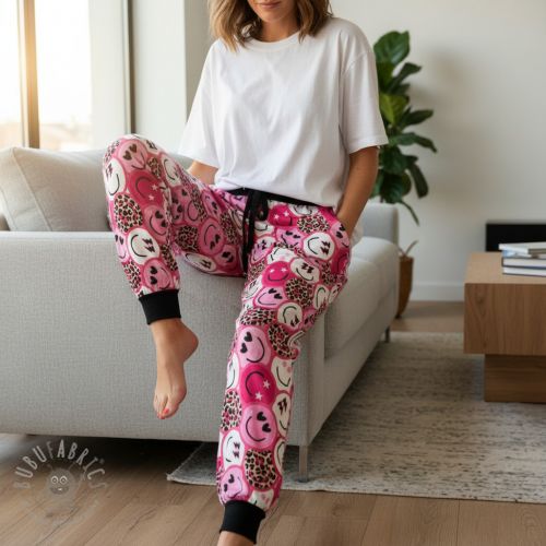Dresówka Happy faces pink digital print