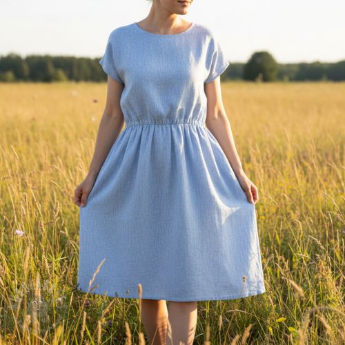 Len bawełna Fishbone light blue