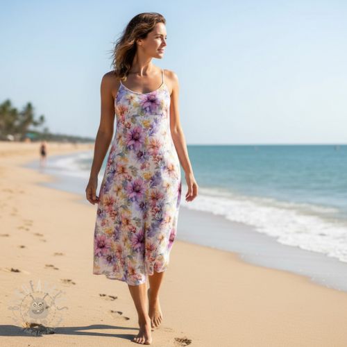 Len z bawelną Peony roses RAMIE light pink digital print