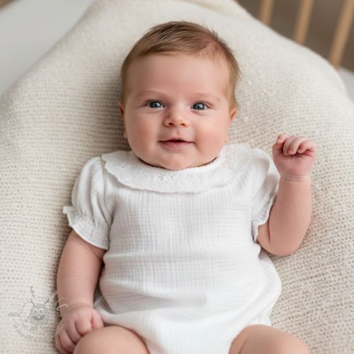 Muślin double gauze BORDER Helene white
