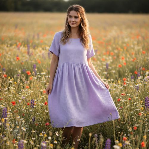 Muślin double gauze lavender ORGANIC