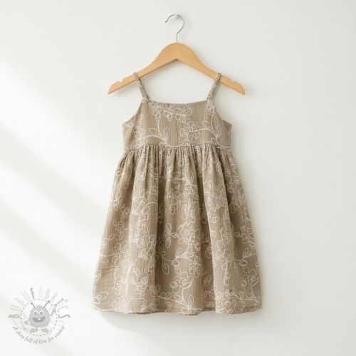 Muślin double gauze EMBROIDERY Climbing flowers beige