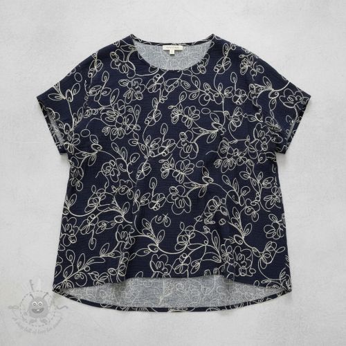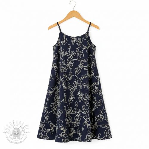 Muślin double gauze EMBROIDERY Climbing flowers navy