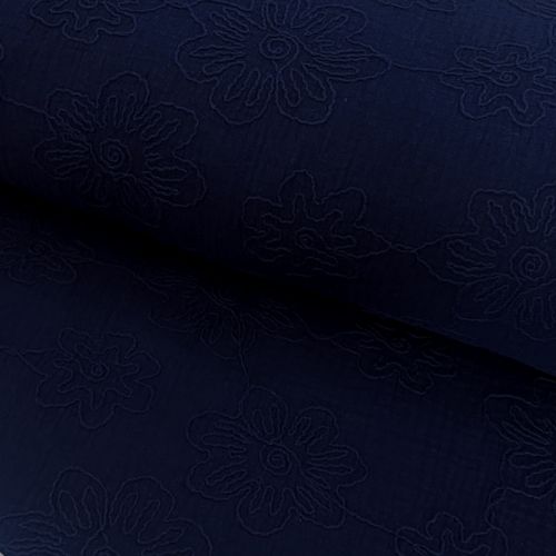 Muślin double gauze EMBROIDERY Flowers navy