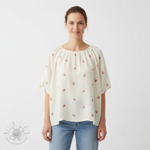 Muślin double gauze EMBROIDERY Fruit natural peach