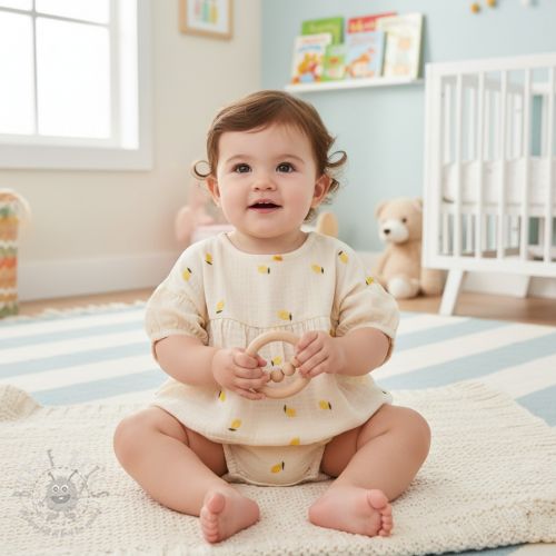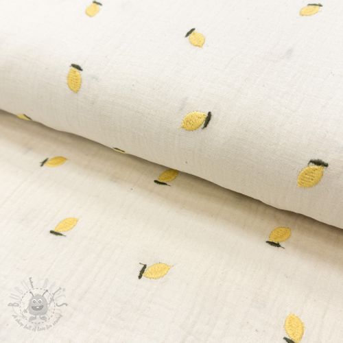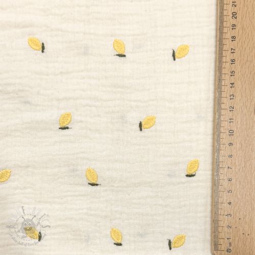 Muślin double gauze EMBROIDERY Fruit natural yellow