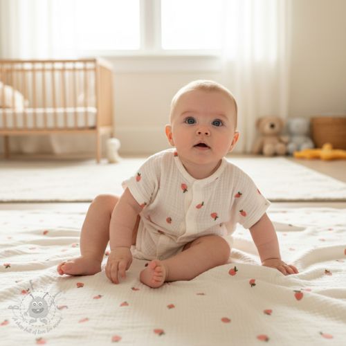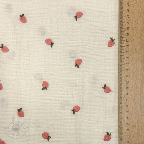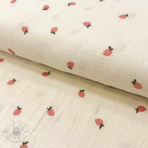 Muślin double gauze EMBROIDERY Fruit peach SIMPLY NATURAL