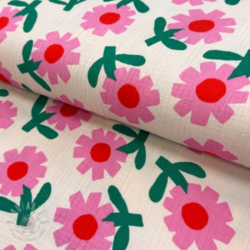 Muślin double gauze Flowers natural/pink by JENNIFER BOURON ORGANIC