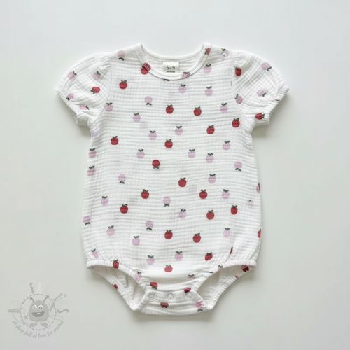 Muślin double gauze Fruits apple white