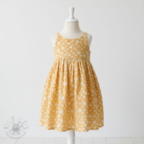 Muślin double gauze JACQUARD Dots dark yellow
