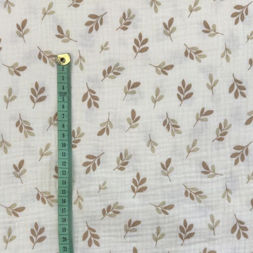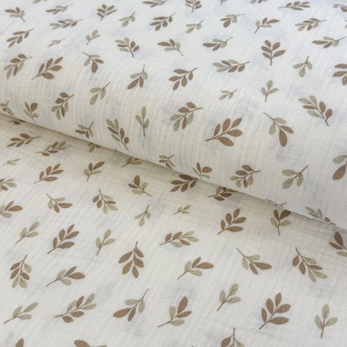 Muślin double gauze Leaves in the wind taupe digital print