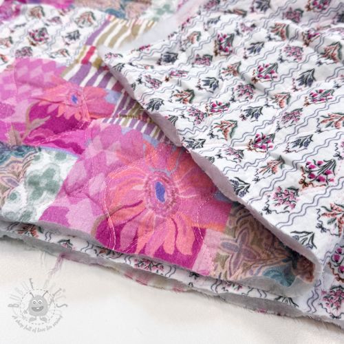 Muślin double gauze STEPPED Flowers light pink digital print