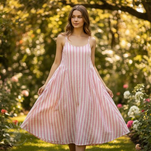 Muślin double gauze YARN DYED Stripe in stripe pink