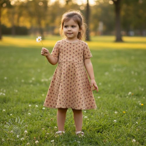 Sztruks STRETCH Little strawberries taupe