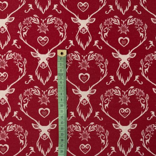 Tkanina dekoracyjna DOUBLE FACE Landhaus Deer Heart dark red