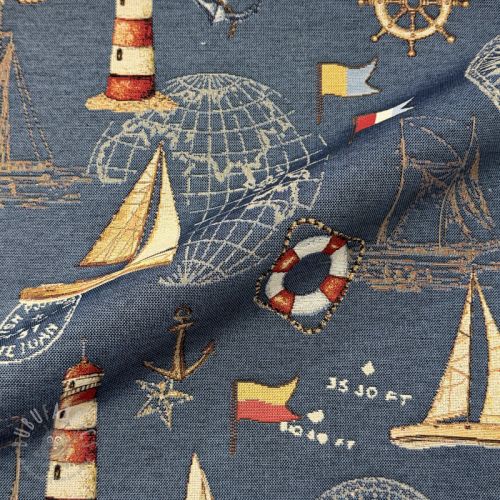 Tkanina dekoracyjna GOBELIN premium Coast Lighthouse Sea