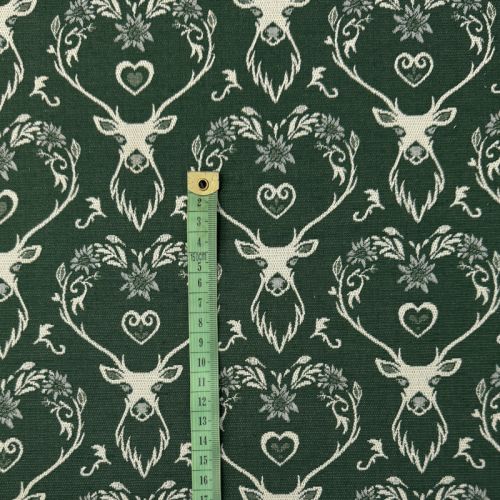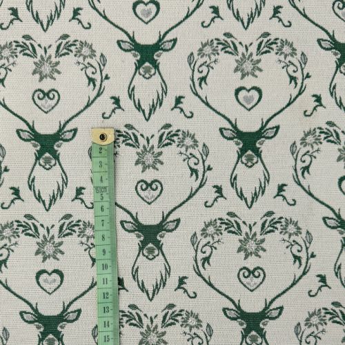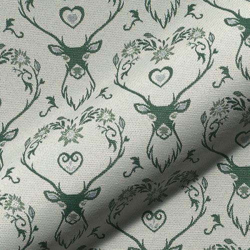 Tkanina dekoracyjna jacquard DOUBLE FACE Landhaus Deer Heart forest green