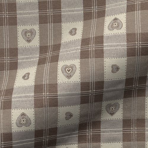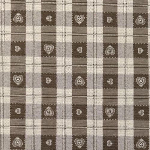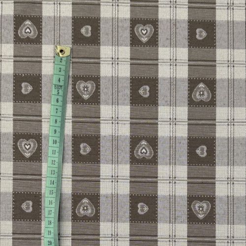Tkanina dekoracyjna jacquard DOUBLE FACE Landhaus Heart Check taupe