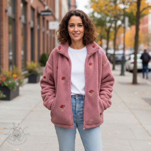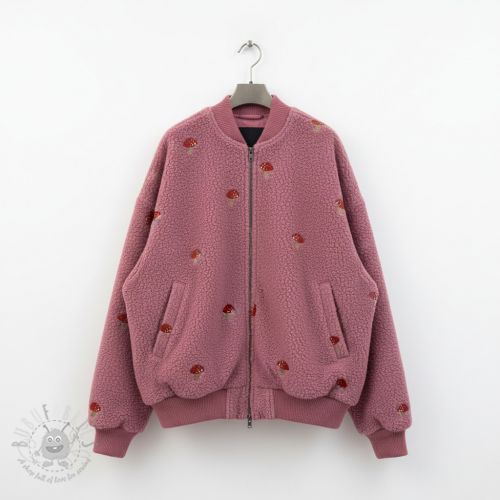 Tkanina płaszczowa EMBROIDERY Little mushrooms old pink