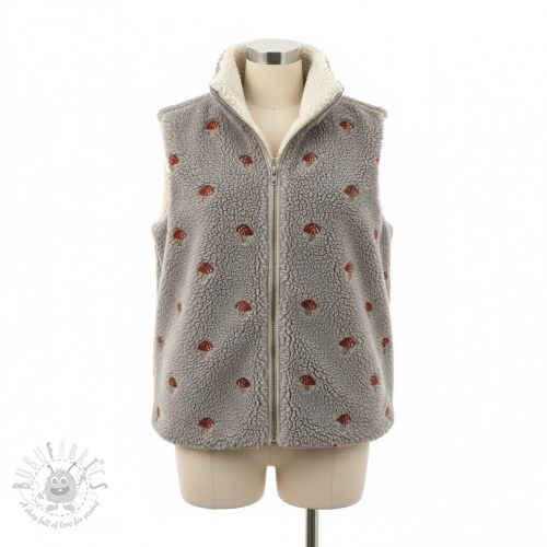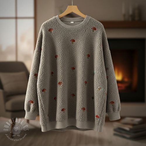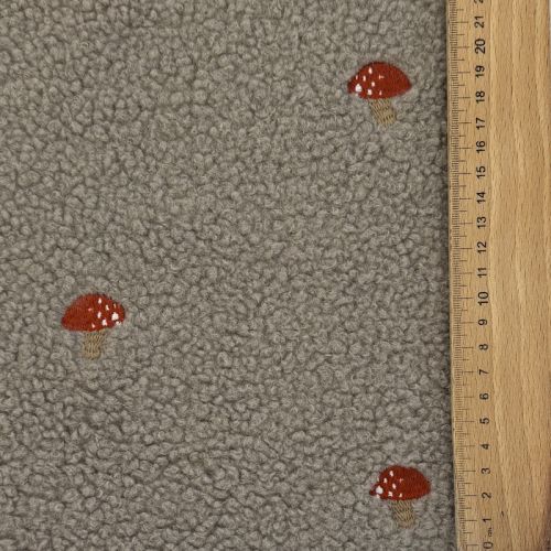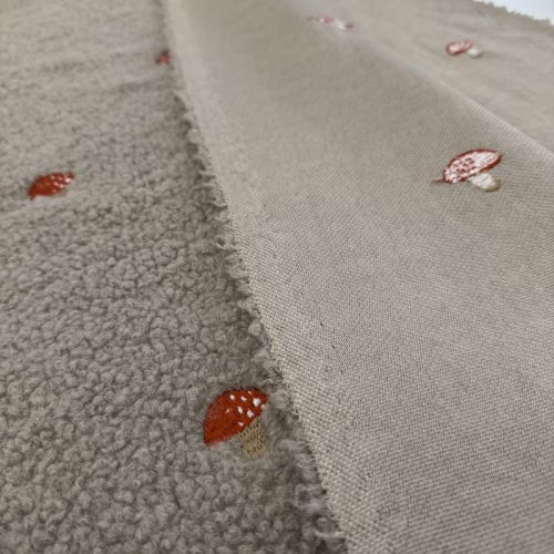 Tkanina płaszczowa EMBROIDERY Little mushrooms pebble