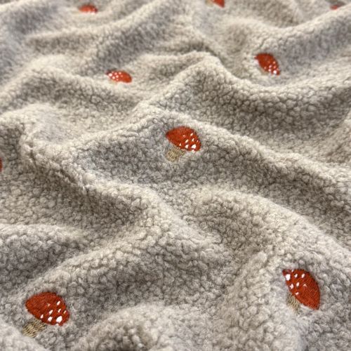Tkanina płaszczowa EMBROIDERY Little mushrooms off white
