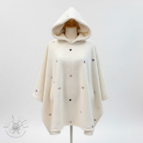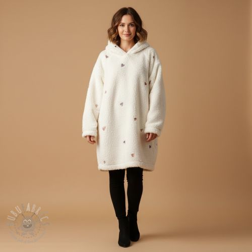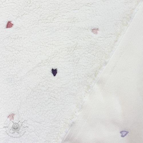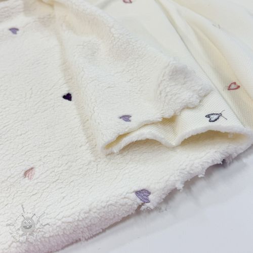 Tkanina płaszczowa TEDDY EMBROIDERY Hearts ecru